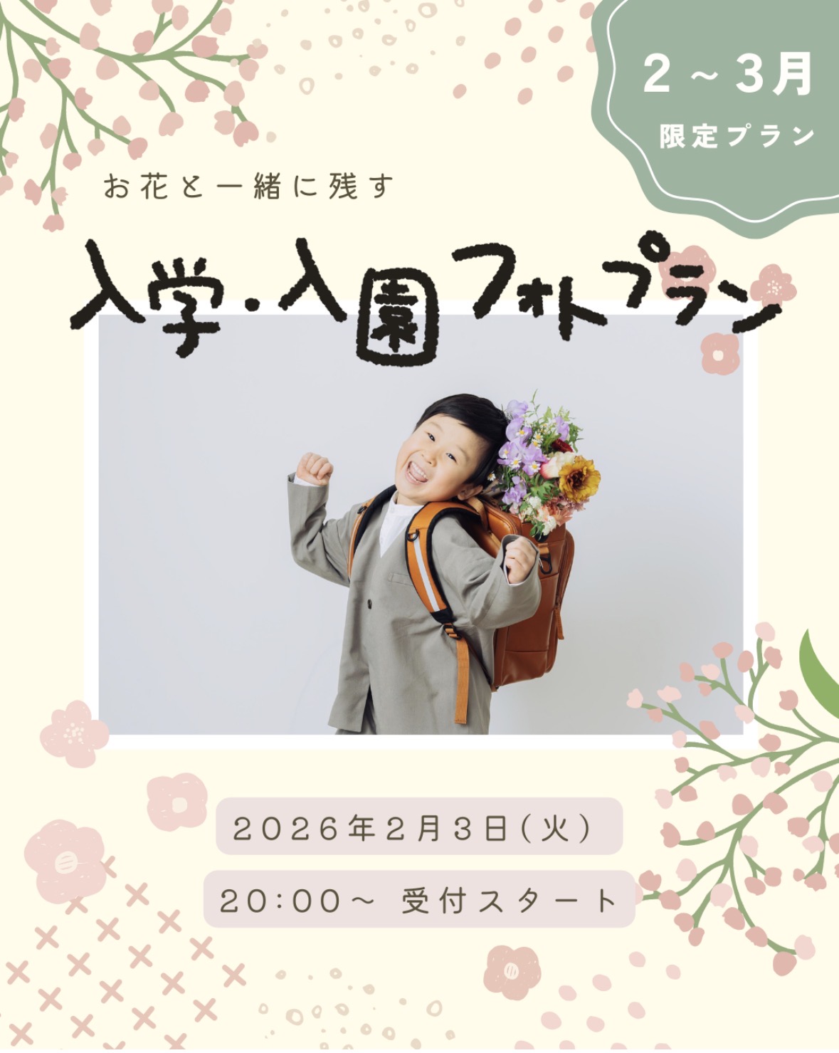 出張カメラマン須田こなみさんによる、2月〜3月限定のプランです。
